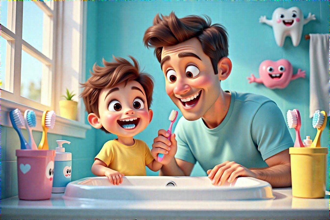4. A szülői szerepcsere: Időnként a gyermek mossa a szülő fogát (természetesen nagyon óvatosan és röviden). Ez nemcsak vicces, hanem segít neki gyakorolni a finommotorikus mozgásokat és megérteni, milyen érzés a szájban a fogkefe.