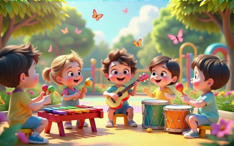 | 3–5 év | Harmónia, szerepjáték, koncentráció | Pontosan hangolt metallofon, játék gitár/ukulele, egyszerű furulya, gyermek szintetizátor. | Hangmagasság megértése, kreatív játék, szociális készségek (együtt zenélés). |